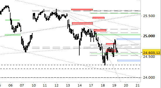 Fissiamo dei livelli di verifica a 24910.00/940.00 (resistenza) e 24400.00/435.00 (supporto). Dobbiamo attendere indicazioni nuove dal test di questi livelli.