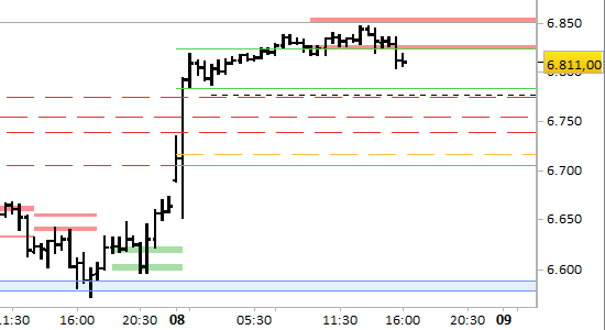 E.mini SP500 intraday: prezzi respinti dalle resistenzee.mini future S&P500 scad. 06/26 I prezzi sono scesi da 6847.25 a 6805.00, tornando a posizionarsi sotto entrambe le resistenze di quota 6824.00/27.00 e 6852.00/55.00, valide ancora fino al prossimo bollettino. Confermiamo...