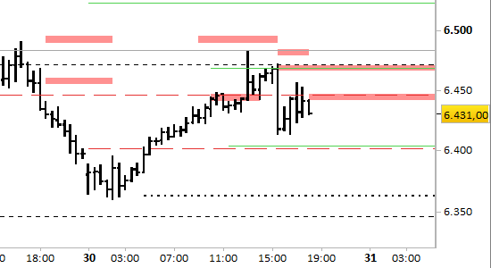 Consideriamo ancora attivo un segnale di arretramento fino a 6404.50 e 6365.00. Le resistenze fino al prossimo aggiornamento si sono abbassate a 6445.00/6447.50 e 6470.00/6473.00. Il segnale short rimane valido solo con rilevazioni stabilmente inferiori a 6473.00.