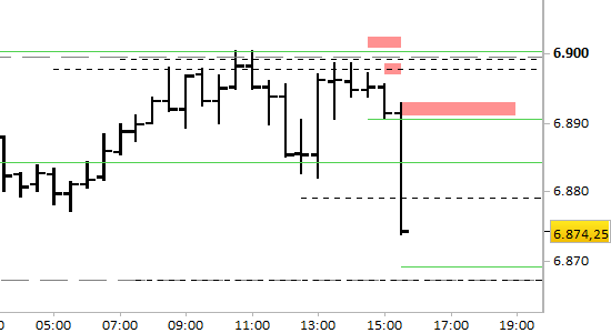 Conserviamo la posizione short aperta a 6894.00; stop sopra 6893.00 senza attendere alcuna conferma.