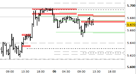 Conserviamo la posizione short aperta ieri a 5679. Stop sopra 5685 senza attendere alcuna conferma.