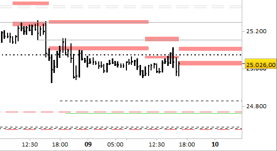 Il segnale short è attivo solo con rilevazioni stabilmente inferiori a 25115.00.