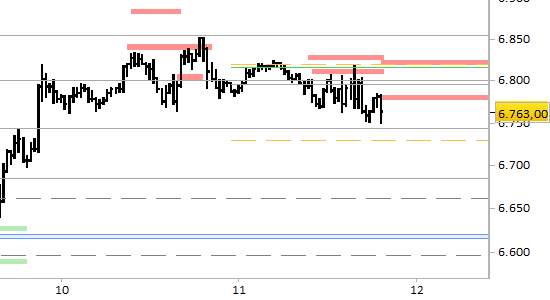 Le resistenze di breve periodo, valide fino all’aggiornamento di domattina, sono disposte adesso a 6780.00 e 6820.00/6825.00, in leggero abbassamento dall’ultimo aggiornamento. Le proiezioni confermano obiettivi ribassisti a 6744.00 e 6710.00. Il segnale short attivo rimane in vigore solo con rilevazioni stabilmente inferiori a 6825.00.