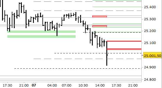 Le resistenze si sono abbassate fino a 25045.00/057.00 e 25111.00/125.00.