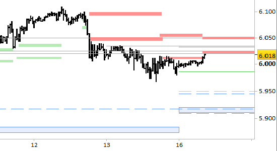Rispetto a venerdì le resistenze di brevissimo periodo si sono abbassate a 6021/24 e 6050/53, punti di probabile ripiegamento. Sono ancora attive le indicazioni ribassiste con obiettivo aggiornato a 5950. Il segnale short rimane in vigore solo con prezzi stabilmente inferiori a 6053.
