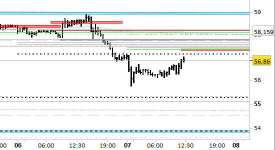 Il segnale è short a mercato e su test della prima resistenza. Stop sopra 58.25 senza attendere ulteriori conferme.