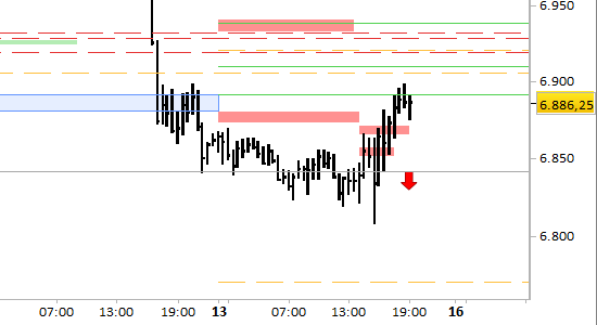 Le resistenze di brevissimo periodo (= fino a lunedì) sono poste a 6910.00 e 6940.00, ed il supporto a 6840.00. La semplice violazione del supporto abbasserebbe la resistenza principale di brevissimo periodo a 6875.00/80.00, aprendo strada ad un arretramento fino a 6772.00. Per il momento siamo in osservazione.
