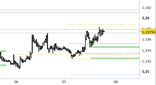 Dopo l'ultimo commento i prezzi hanno raggiunto massimi relativi a 1.1583 prima di stabilizzarsi sopra 1.1566.