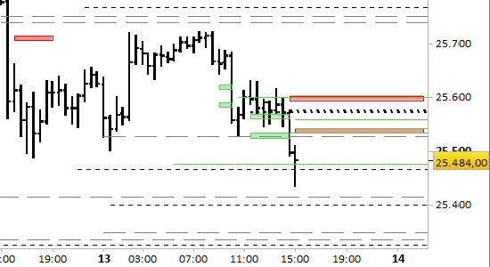 Le resistenze si sono portate a 25530.00/540.00 e 25593.00/600.00.