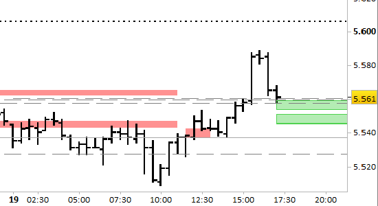 Conserviamo la posizione long aperta a 5567 con obiettivo 5606.