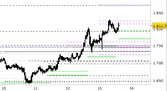I supporti si sono alzati fino a 1793.8/97.6 e 1769.4/74.4. Il target è posto a 1874.0/75.0.