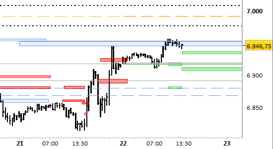 Le potenzialità di superamento della resistenza di tendenza sono adesso strettamente legate alla tenuta dei nuovi supporti daily aggiornati a 6935.00 e 6908.00. Prezzi stabilmente superiori possono ancora puntare ad un allungo fino a 7010.00. Una revisione allo scenario di brevissimo periodo sarebbe necessaria con quotazioni inferiori a 6908.00, sotto cui potrebbero aprirsi spazi fino a 6803.50.