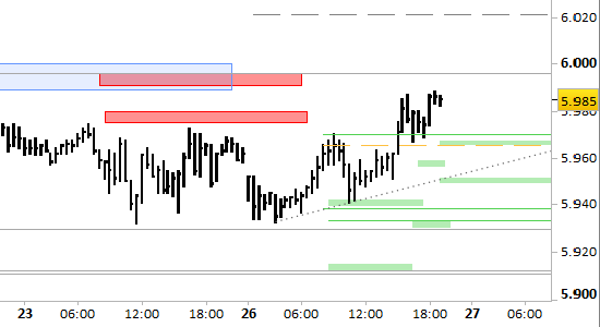 I supporti di brevissimo periodo (=fino a domani) si sono alzati a 5965 e 5949/52. Le potenzialità di ulteriore allargamento del rialzo fin da subito sono strettamente legate alla tenuta dei nuovi supporti, sotto cui il segnale rialzista verrebbe provvisoriamente interrotto. La tenuta dei livelli mantiene attivi dei target aggiornati a 5995 e 6018.