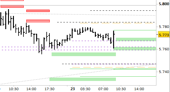 Conserviamo la posizione long aperta ieri a 5779; stop sotto 5759 senza attendere alcuna conferma.