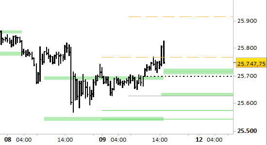 I supporti si sono alzati fino a 25705.00/710.00 e 25625.00/630.00.