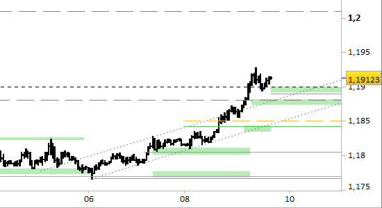 Con riferimento al brevissimo periodo (= fino a domattina) i supporti di maggior rilievo si sono alzati a 1.1890 e 1.1870. Il segnale rialzista è ancora attivo. Le proiezioni forniscono un target a 1.2000 alla portata dei valori potenzialmente già domani. Il segnale rimane attivo con prezzi superiori a 1.1870.
