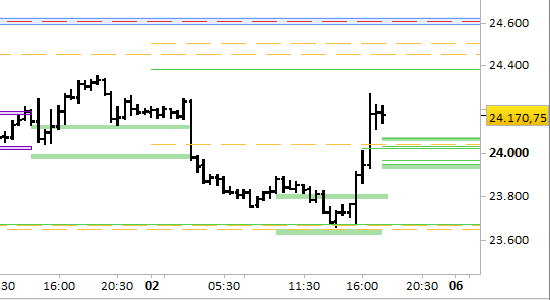 I supporti si sono alzati fino a 24070.00 e 23925.00/23955.00, punti di probabile reazione su eventuali debolezze, con valenza fino all'aggiornamento di domattina.