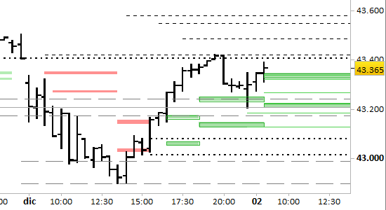I supporti si sono alzati a 43325/335 e 43200/210.