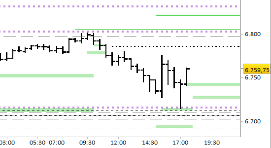 I supporti si sono alzati fino a 6741.00/43.50 e 6725.50/29.00.