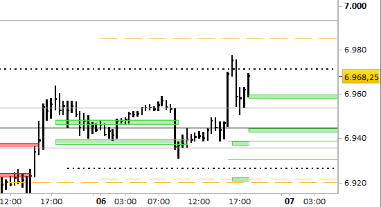I supporti si sono alzati fino a 6959.50 e 6943.00.