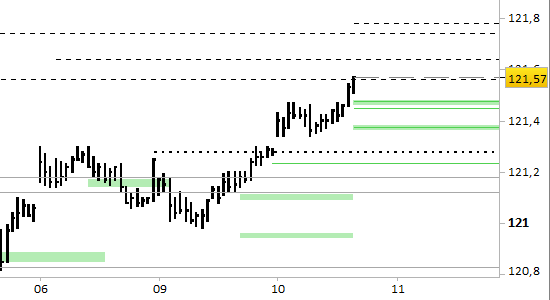 I prezzi hanno già raggiunto e oltrepassato i primi obiettivi a 121.38 e 121.45 indicati con l’ultima analisi.