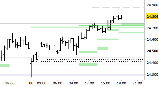 Con riferimento al brevissimo periodo (= fino a lunedì) i supporti si sono alzati ancora fino a 24740/24746 e 24655/24669, punti di reazione in caso di arretramenti. Ci sono ancora margini di allargamento del recupero fino a 24880. Il segnale rialzista di brevissimo periodo è attivo solo con prezzi superiori a 24655.