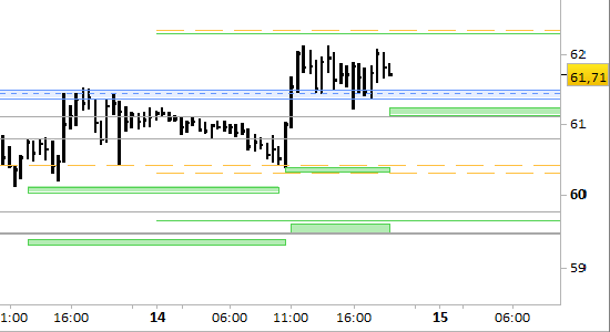I prezzi stanno provando a stabilizzarsi sopra la resistenza di medio periodo a 61.30/61.45. Dopo la chiusura daily odierna potremo eventualmente rivedere i livelli validi per la tendenza a 5-10 giornate.