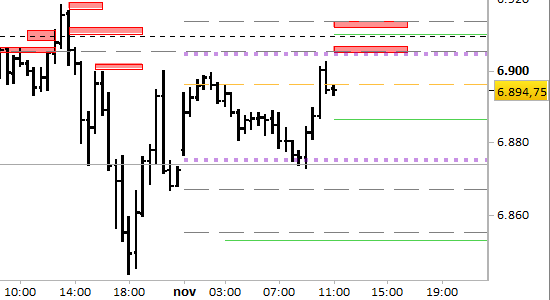 Apriamo short solo su ritorni a 6904.50; stop sopra 6914.50 senza attendere alcuna conferma.