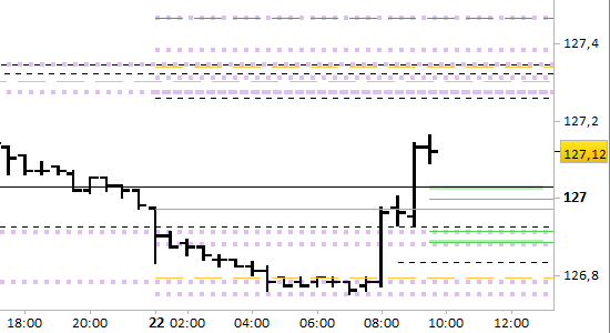 Il segnale è long su ritorni a 127.03 o in semplice violazione rialzista di 127.17. Stop sotto 126.88 senza attendere alcuna conferma.