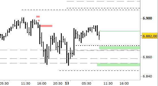 Apriamo long su ritorni a 6872.50; stop sotto 6850.00 senza attendere alcuna conferma.