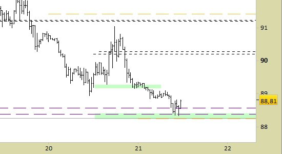 I prezzi si trovano a poca distanza dal supporto principale piazzato ieri a 88.27/37, che va aggiornato adesso a 88.26.