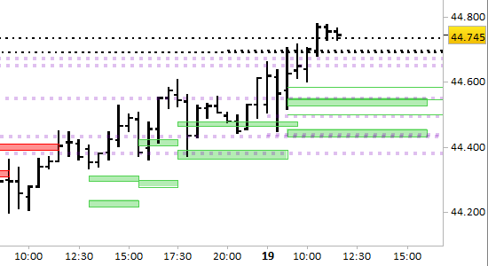 La posizione long aperta ieri a 44440 è stata chiusa sul target principale a 44685.