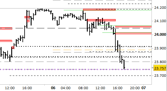La posizione short aperta a 24069 è stata chiusa sul target principale a 23841.