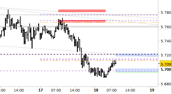 Lo spazio fra 5722 (resistenza) e 5696 (supporto) è adesso zona di probabile stabilizzazione.