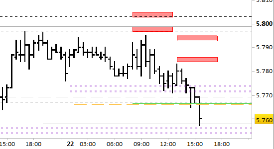 La posizione short aperta a 5790 è stata chiusa sul target principale a 5767.