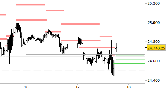 Per il brevissimo periodo (= fino a domani) segnaliamo la formazione di supporti a 24658.00/24674.00 e 24565.00/24578.00, punti di reazione in caso di arretramenti. Tecnicamente ci sono le condizioni per un ampliamento del recupero fino a 24940.00. Una ulteriore stabilizzazione sopra questo livello aprirebbe spazi fino a 25400.00 in settimana. Il segnale di brevissimo è attivo solo con rilevazioni stabilmente superiori a 24565.00.