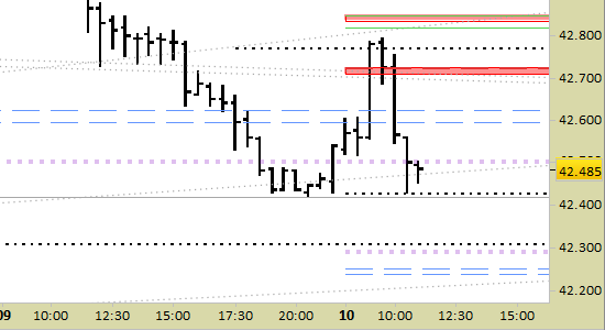 Liquidiamo a mercato la posizione short aperta a 42700. Ci rimettiamo in osservazione, sono possibili dei rapidi riavvicinamenti alle resistenze di quota 42720 e 42850.