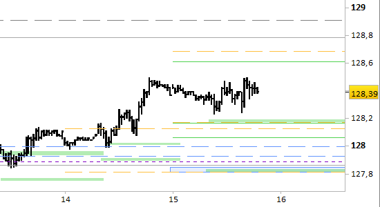 Confermiamo i supporti fino a domattina a 128.15/18 e 127.80/85, quest'ultimo coincidente oggi con il supporto principale di tendenza. Le proiezioni sono rialziste fino a 128.60 e 128.90. Conserviamo la posizione long aperta a 128.24; stop sotto 127.80 senza attendere alcuna conferma.