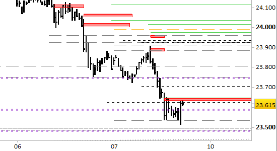 Risulta ancora attivo il target principale ribassista a 23501.