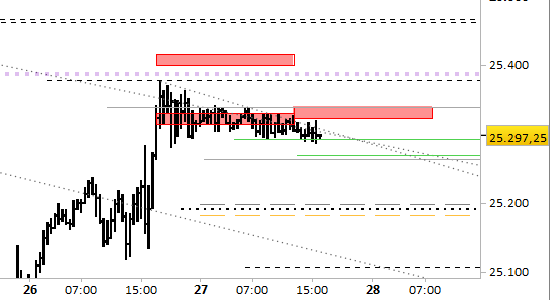 Conserviamo la posizione short aperta ieri a 25306.00. Stop-e-reverse sopra 25343.00 senza attendere alcuna conferma.