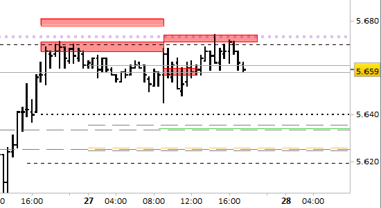 Conserviamo la posizione short aperta ieri a 5666; stop sopra 5674 senza attendere alcuna conferma.