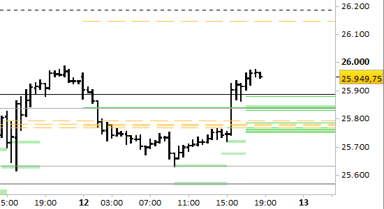 I supporti sono fermi a 25840.00 e 25750.00/760.00, sostegni a proiezioni rialziste fino a 26145.00.