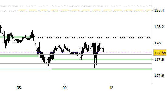 I prezzi hanno effettuato l'attesa reazione dalla zona dei supporti, fermi a 127.79/82 e 127.67/70.