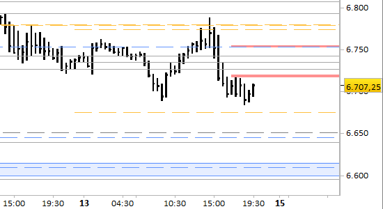 Nessuna modifica fino all'aggiornamento di lunedì mattina. Le resistenze di breve periodo sono ferme a 6716.0/20.00 e 6750.00/55.00, punti di ripiegamento in caso di recuperi. Le aspettative sono di ampliamento della debolezza fino a 6654.00, passando per un primo target intermedio a 6675.00. Il segnale short di breve periodo resta attivo solo con rilevazioni stabilmente inferiori a 6755.00.