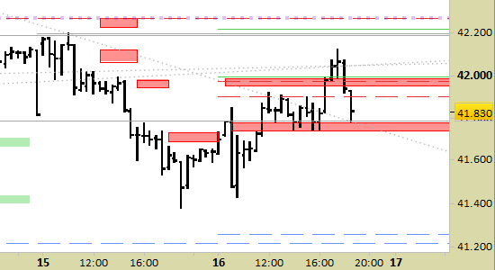 La posizione short aperta a 41690 è stata chiusa in stop a 42040.