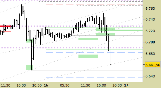 Ci aspettiamo una provvisoria stabilizzazione nello spazio fra 6655.00/57.00 (supporto9 e 6691.00 (resistenza). I segnali ora disponibili sono molto contraddittori. Restiamo in osservazione fino a domani.