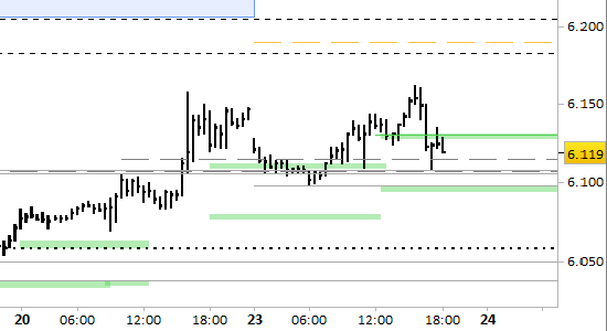 I prezzi sono fermi nell'area compresa tra i supporti di brevissimo periodo, con valenza sino all'aggiornamento di domattina, posti a 6130 e 6095/6100. Le proiezioni sono ancora rialziste fino a 6183. Il segnale long rimane attivo nel brevissimo periodo solo con prezzi stabilmente superiori a 6095.
