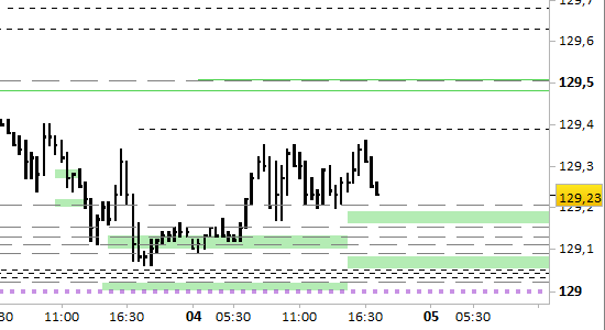 i prezzi stanno effettuando un riavvicinamento ai supporti di quota 129.15/20 e 129.05, validi fino all'aggiornamento di domattina.