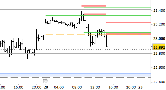 Dall'ultimo aggiornamento i prezzi si sono spostati in accelerazione al ribasso da 23268 fino a 22895, raggiungendo il target di 23015 e stabilizzandosi in area 22946. Attendiamo ora una stabilizzazione dei valori sotto le resistenze a 23055/75 e 23230/235, in preparazione alla rottura ribassista dell'area di supporto intermedio a 22790/845, con proiezioni a 22590. Il segnale ribassista rimane attivo con rilevazioni stabilmente inferiori a 23235.