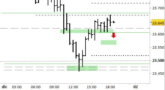 Intendiamo intervenire short su semplice violazione ribassista di quota 23605, con obiettivo 23520.